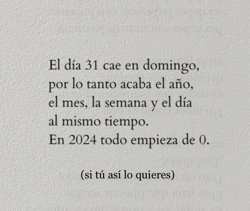 Así que mañana, o quizá este día (donde sea que en el mundo te encuentres) te enfrentarás al «minuto cero» para empezar lo que creerías que ya llevabas viviendo. Sí, este es tu espacio ritual para satisfacer estas ganas tan nuestras de tener «Un Nuevo Comienzo». Ojalá y te percates de este sentimiento, del primer color del cielo, el primer deseo de tus uvas, el primer propósito que pasó por tu cabeza antes de que siquiera empezaras tu lista y te percates que mucho antes de que aprendiéramos a contabilizar la vida, sabíamos vivirla.